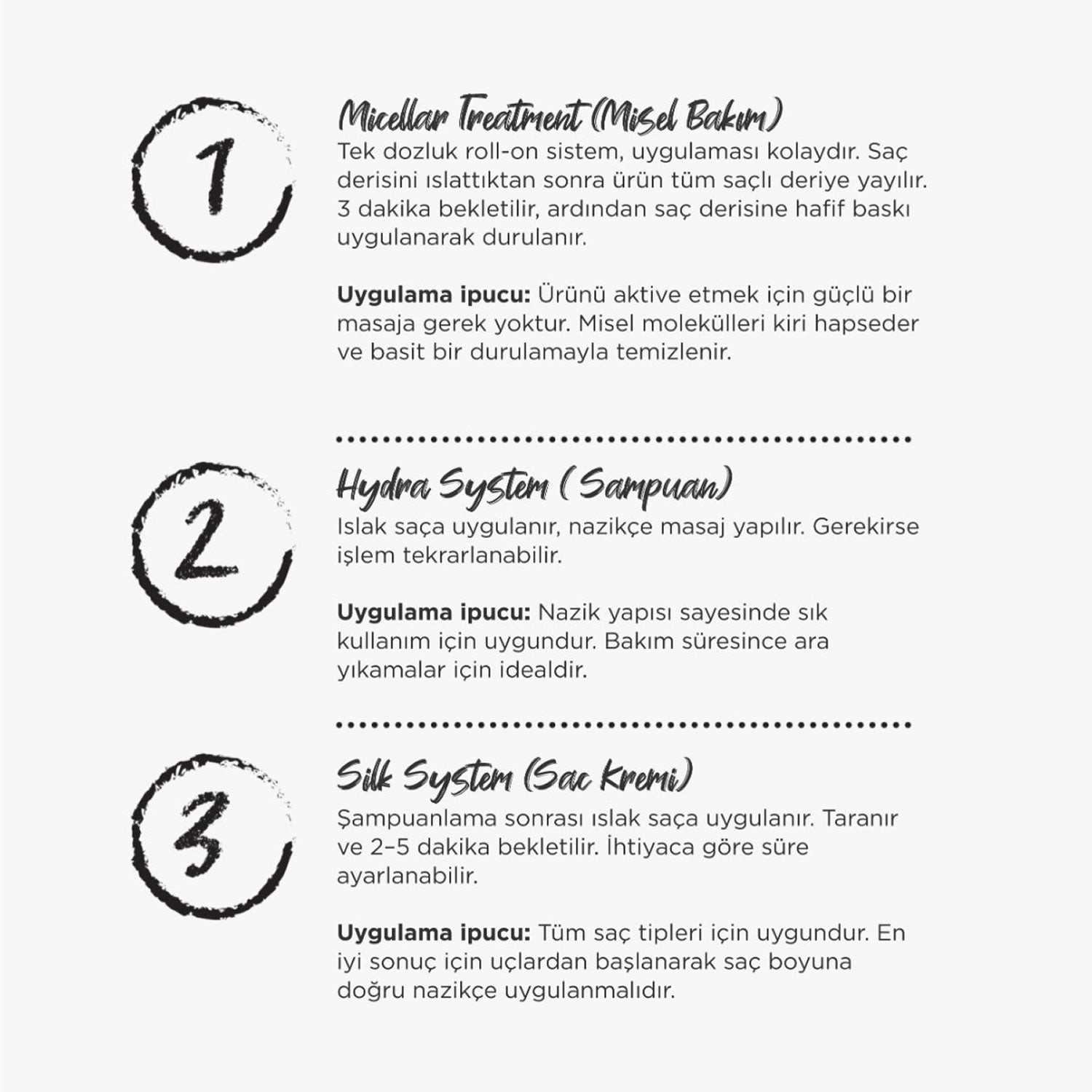Kuru ya da hafif nemli saç derisine roll-on ucu ile uygulayın. Masaj yapmadan 2–3 dakika bekletin. Durulama gerekmez. Haftada 1–2 kez kullanılması önerilir.